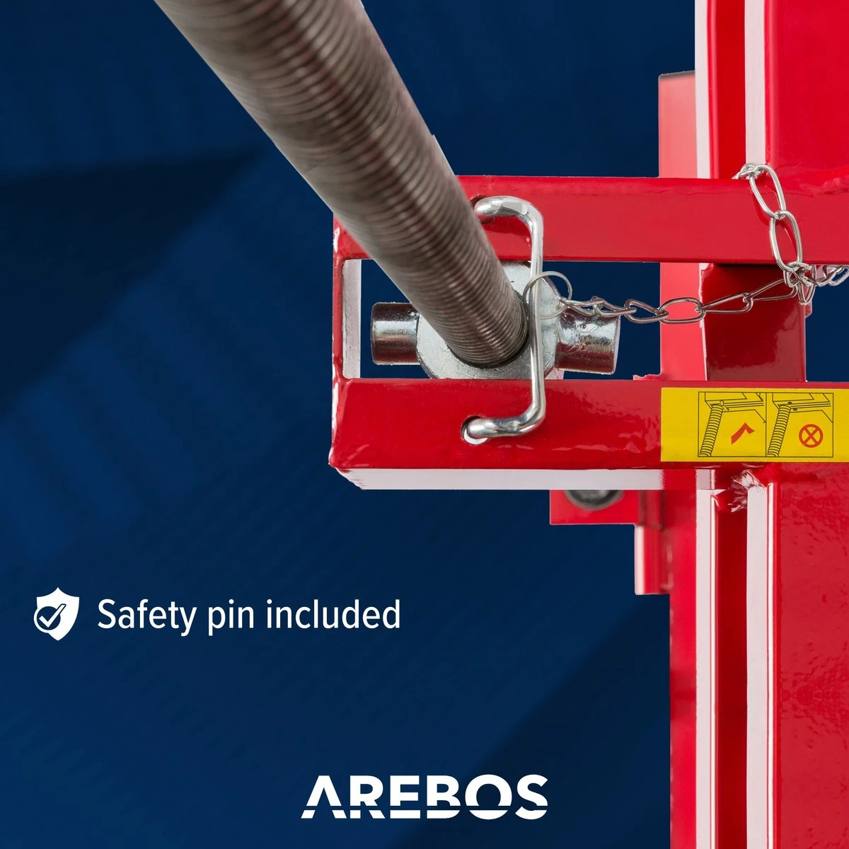 Onze grasmaaierlift is uitgerust met een veiligheidsslot voor het vastzetten van de zwengel. Gelieve het heftoestel niet te gebruiken als de pen niet goed op zijn plaats zit.