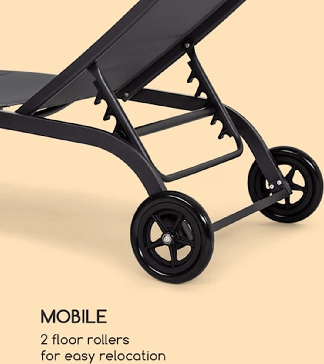 Het uiterst stabiele blumfeldt Limala ligbed is precies wat je nodig hebt om lekker te kunnen ontspannen. Dankzij de in 6 standen verstelbare rugleuning kun je liggen of zitten, net waar je zin in hebt. Het frame van stalen en aluminium buizen is buitengewoon stabiel en heeft een draagkracht van max. 150 kg. De bekleding van sneldrogend en afwisbaar textileen met een maasdichtheid van 2 x 1 mm zorgt met een oppervlakte van 57,5 x 191,5 cm voor het beste comfort. En dankzij de wieltjes kan hij gemakkelijk van de zon naar de schaduw en weer terug.