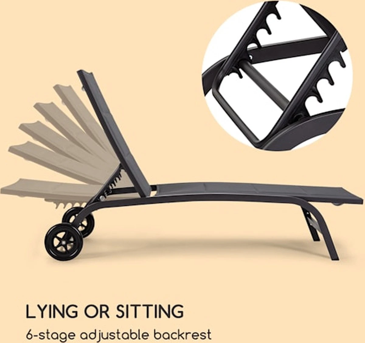 - Liggen of zitten: rugleuning in 6 standen verstelbaar