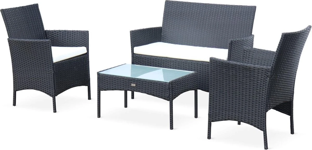 2 fauteuils, 1 sofa en 1 salontafel – zwart/ecru